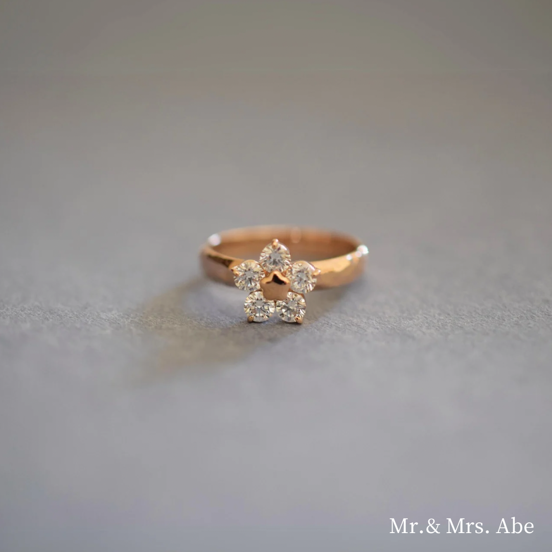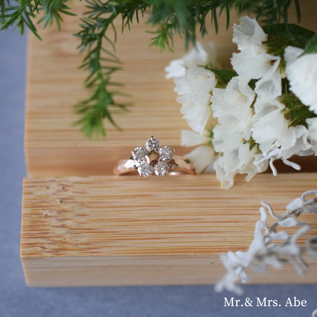 The BlossomSpark ring combines the five-flower design of the Prunus Mume Blossom with the lab-grown diamonds used in pet jewelry to form the shape of a plum blossom with diamonds. The base metal in the center of the flower also serves as a claw to support the diamond, while also forming the shape of a plum blossom.
