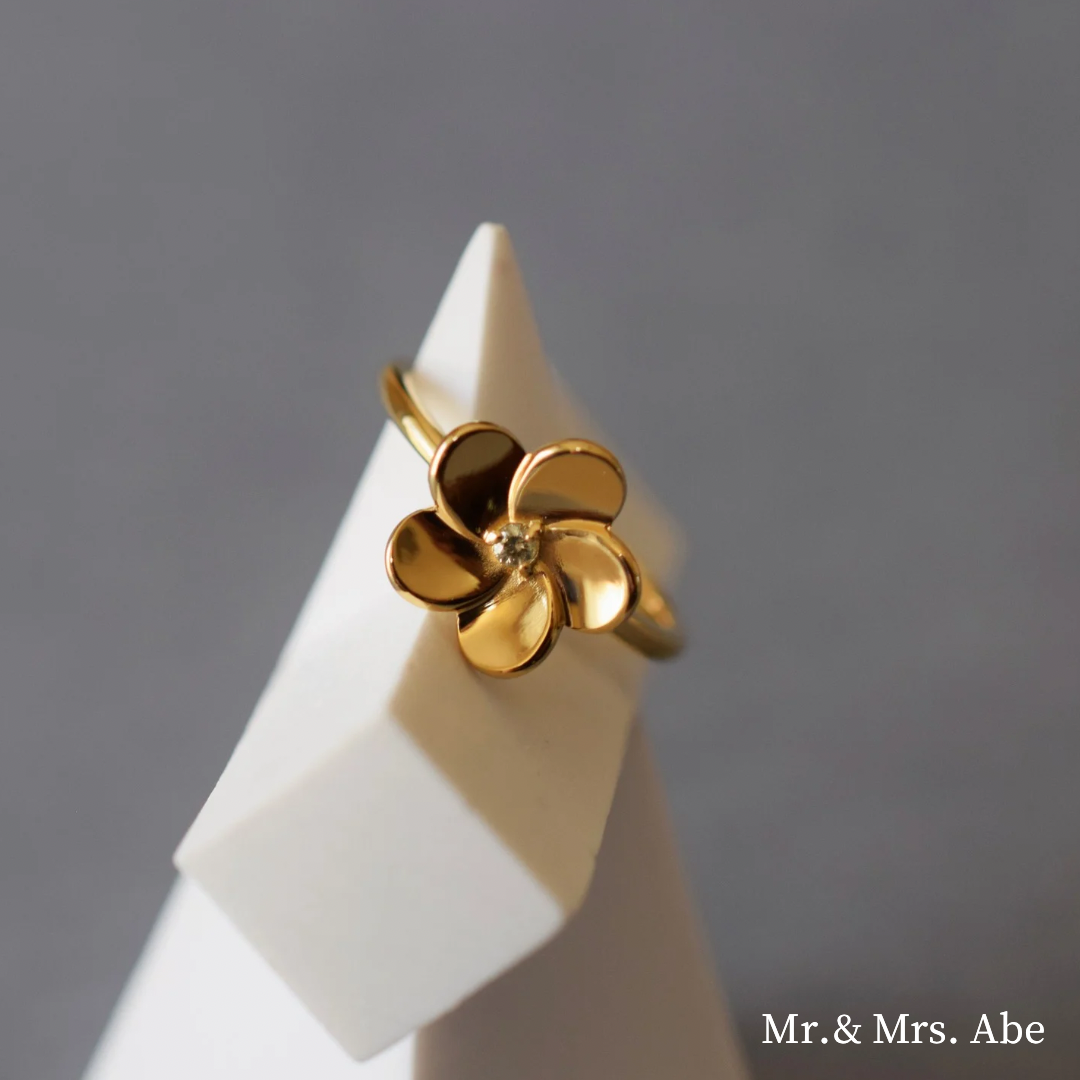 It's a timeless piece that can elevate any look, from everyday elegance to special occasions. The delicate representation of a plum blossom in matte gold adds an understated glamour to your hands. The diamond at the center, highlighting the soft curves of the petals, exudes a refined shine. The traditional beauty of Japanese plum blossoms is incorporated into the design, making it a perfect gift as well. Why not let one flower bloom at your fingertips with the jewelry of Mr. & Mrs. Abe?